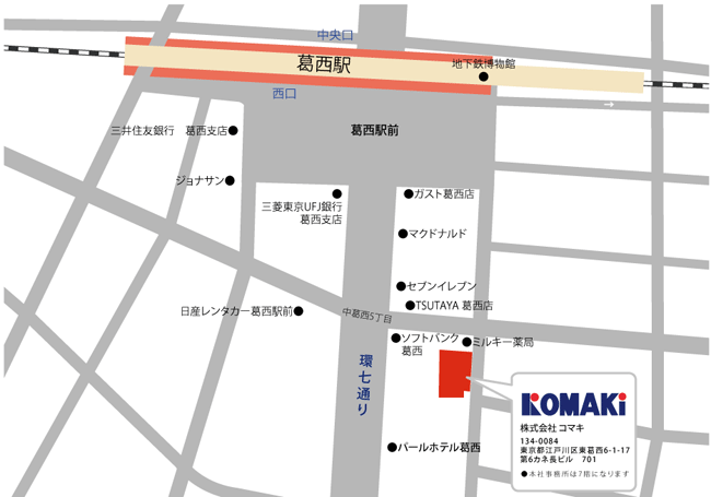 株式会社コマキへの交通案内です。弊社にお越しの際は大変お手数ですが、電話にてご一報ください。